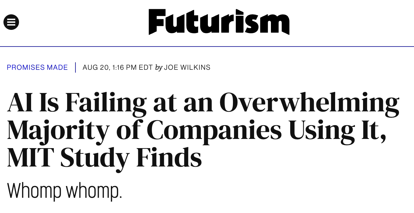 Bei der MIT-Study handelt es sich um eine Befragung von 153 amerikanischen Führungskräften zu 300+ Initiativen, bei denen “aufgabenspezifische AI-Tools” (also keine allgemeinen LLMs wie ChatGPT) intern in Auftrag gegeben wurden.